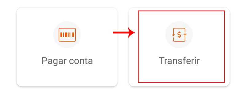 Clique no ícone Transferir e siga o fluxo para transferir valores em uma conta Sunpay Bank.
